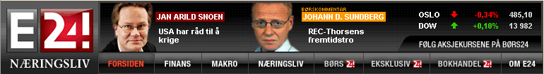 | nåværende | 4. okt. 2007 kl. 18:17 | 770 × 106 (19 KB) | WikiSysAdmin (diskusjon | bidrag) | Faksimile av [http://www.e24E24] 3. oktober 2007. |