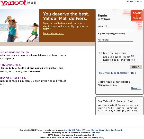 Faksimile av Yahoo! Mail 02.10.2008